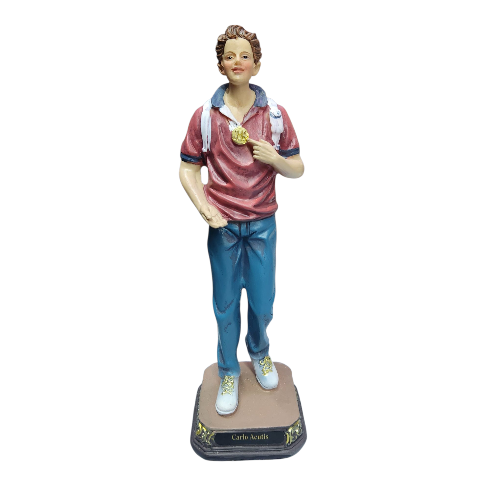Carlos Acutis Statue, made of resin. Created with our faith in mind. An Excellent gift for a loved one.