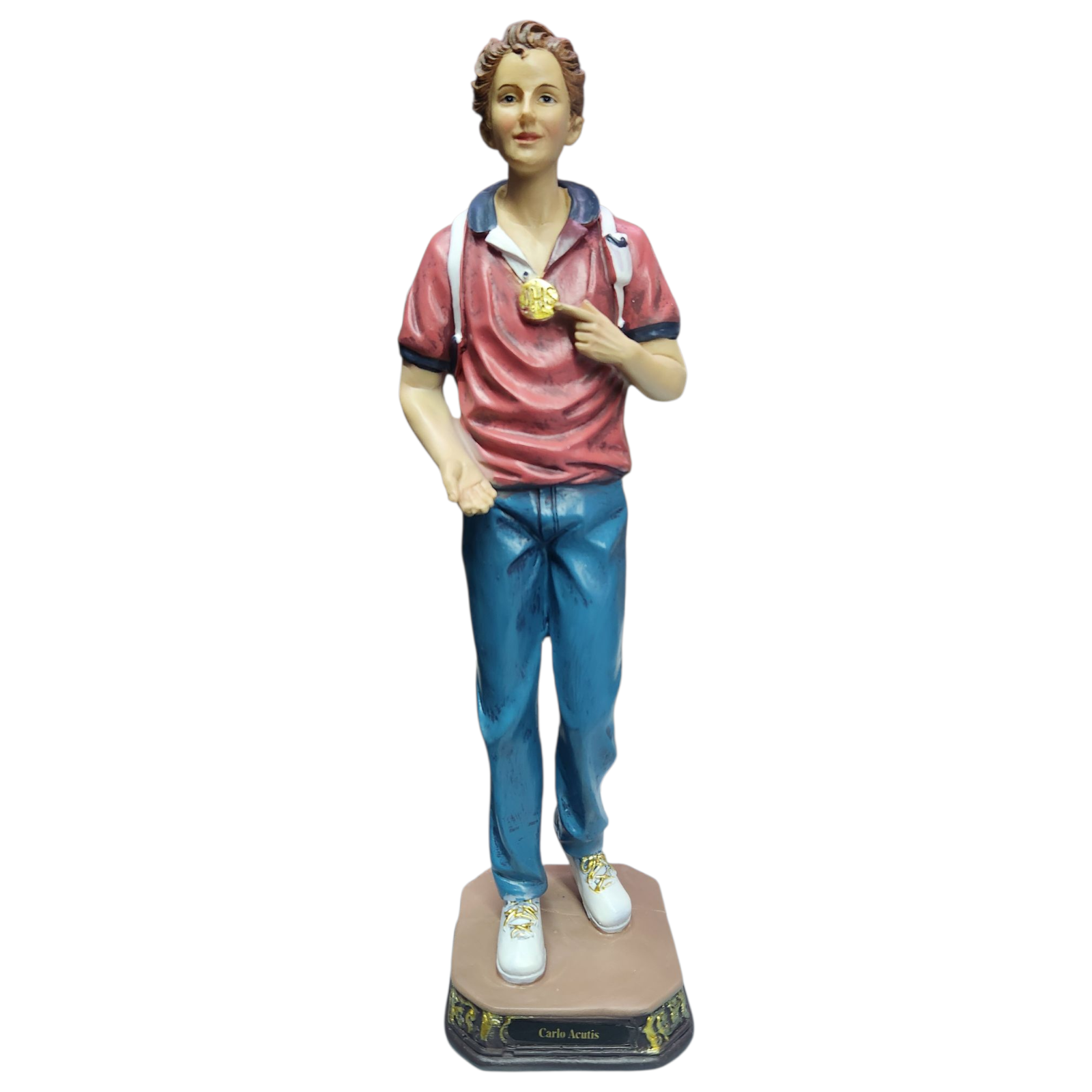 Carlos Acutis Statue, made of resin. Created with our faith in mind. An Excellent gift for a loved one.